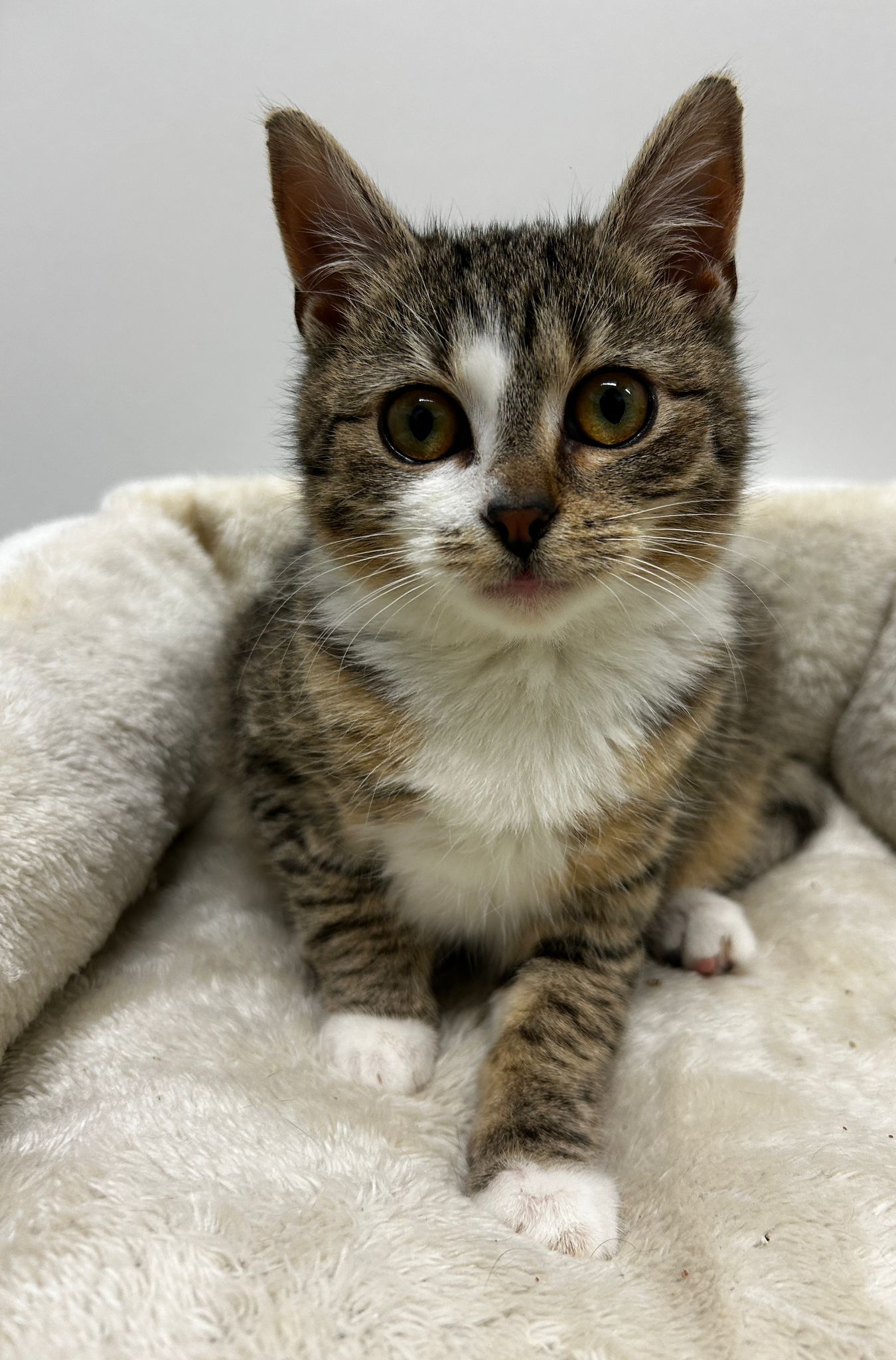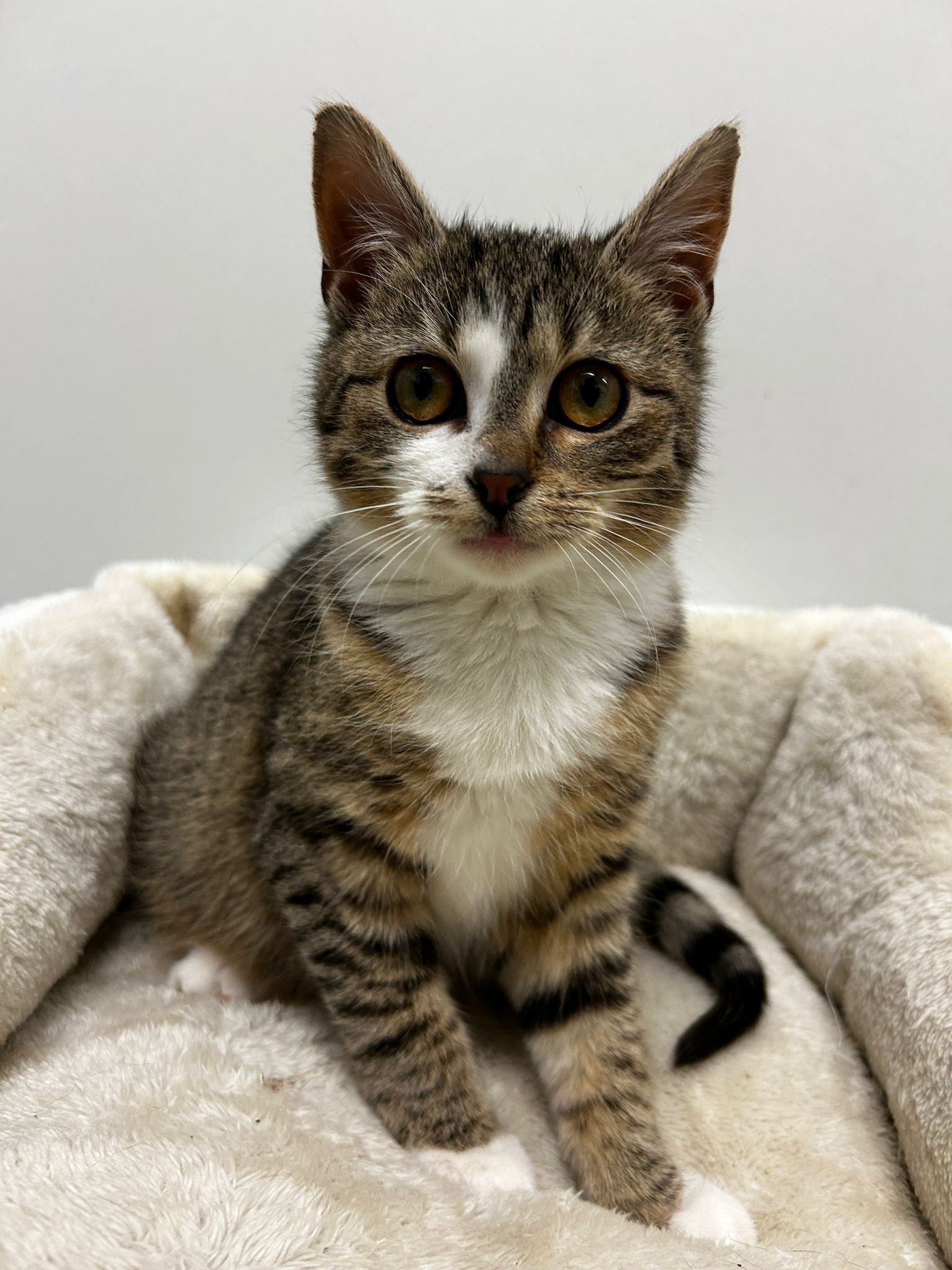 Ta około 7-miesięczna koteczka trafiła do nas jako maleństwo w bardzo złym stanie.